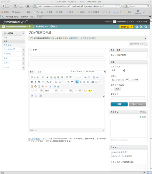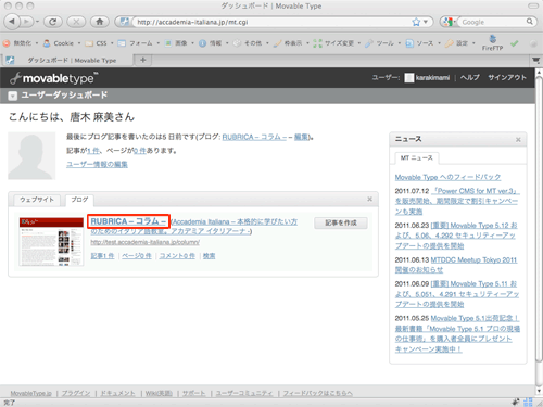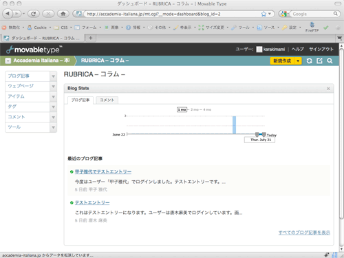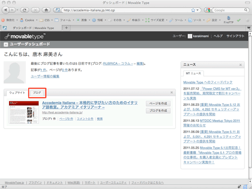 1. MovableTypeへのアクセス方法を参照に管理画面へアクセスします。