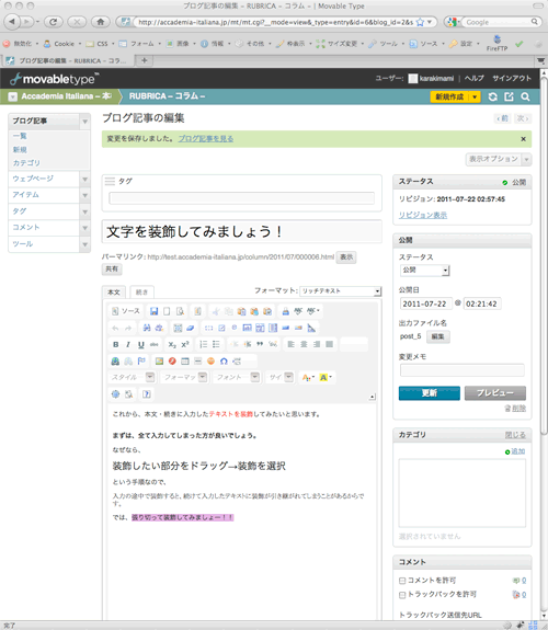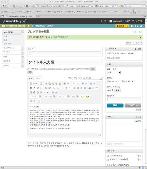 このように、一つ記事を作成しただけで関連づけたページ全てが自動で更新されるのがCMSの特長であり便利な所です。