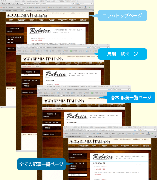 トップページ、月別一覧ページ、ユーザー別一覧ページ、全てのコラム一覧ページの全てに今入力した記事が表示されていますね。