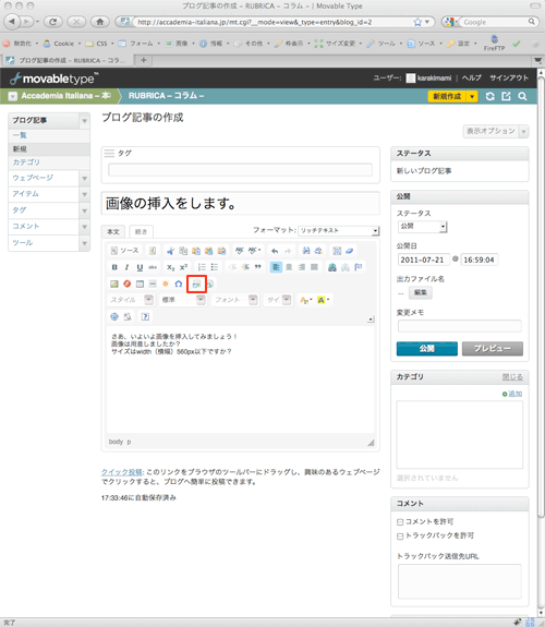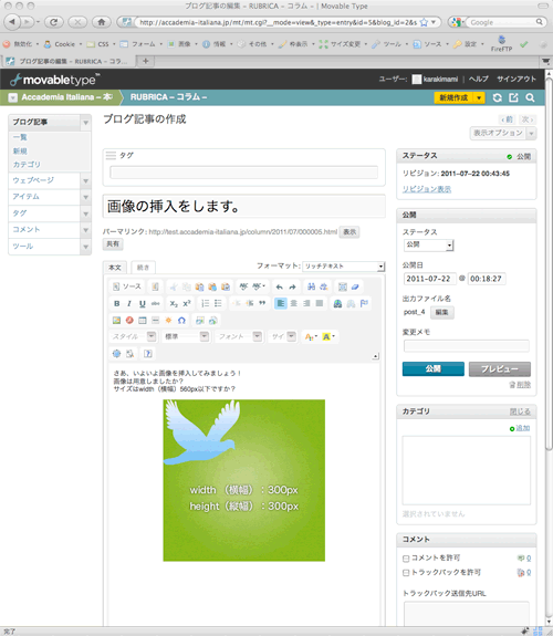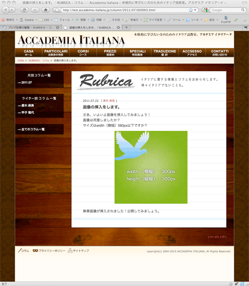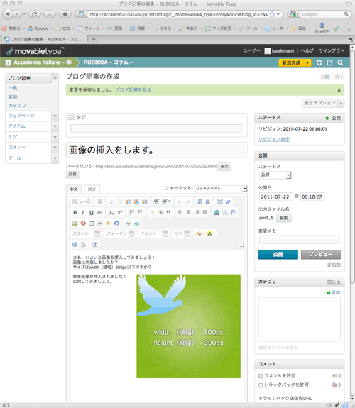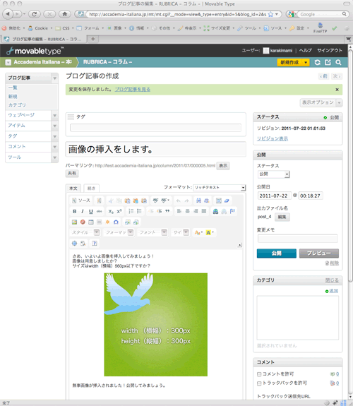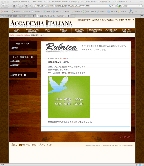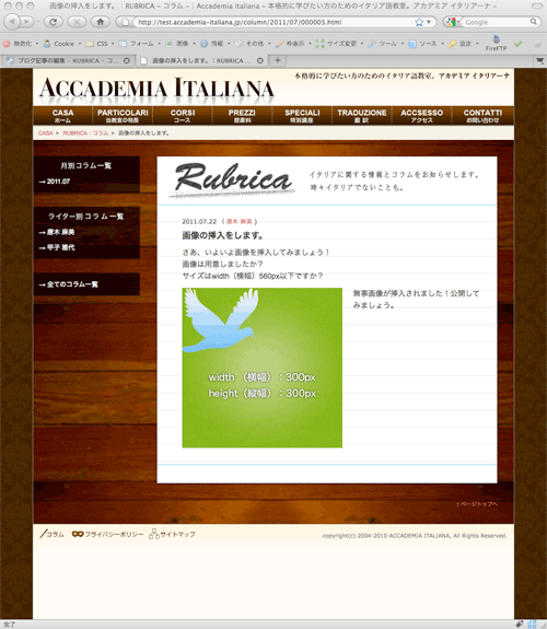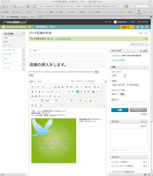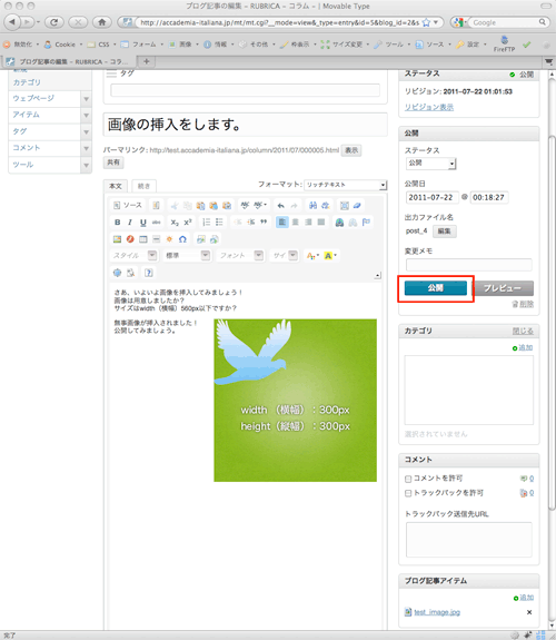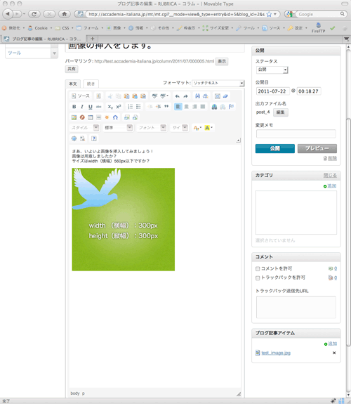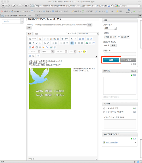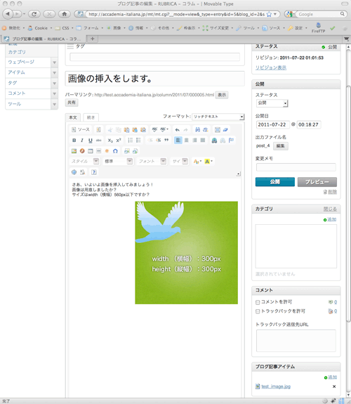 ←ファイル名「test_image.jpg」を本文に挿入してみましょう。