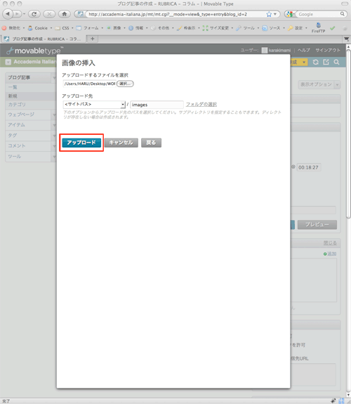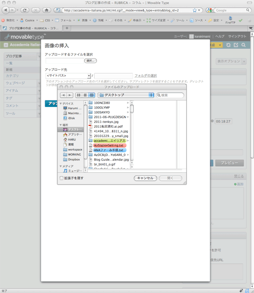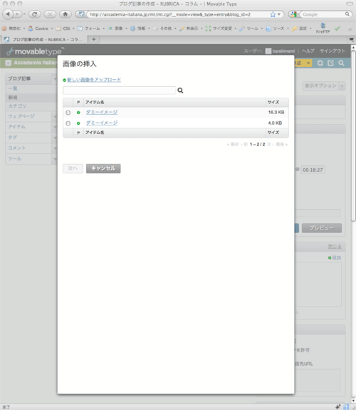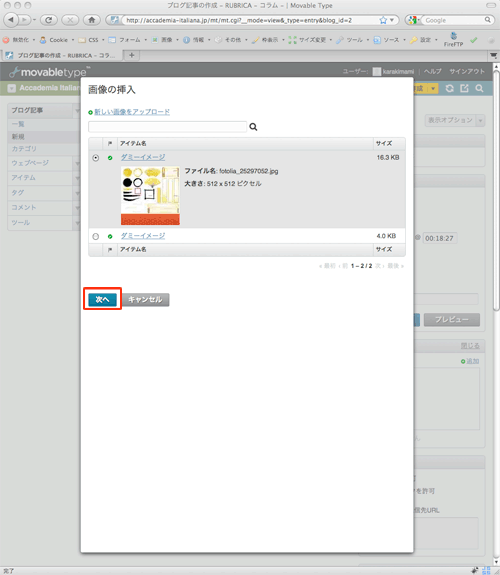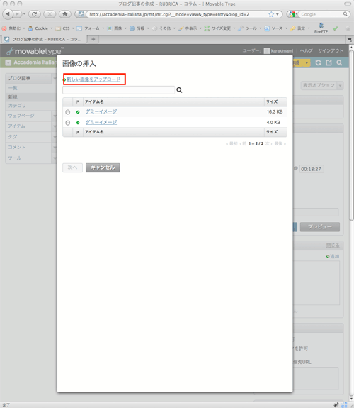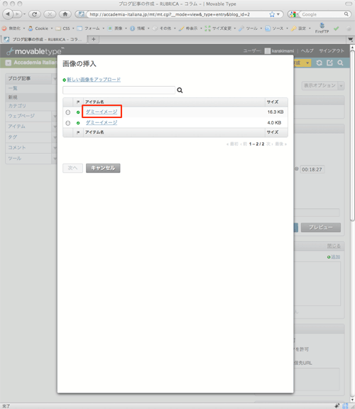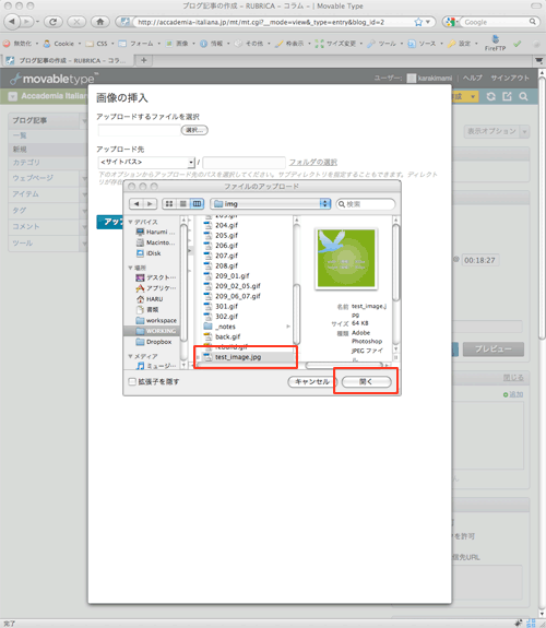 4. 既にアップロードしてある画像ファイルを選択する時はファイル名をクリックします。
