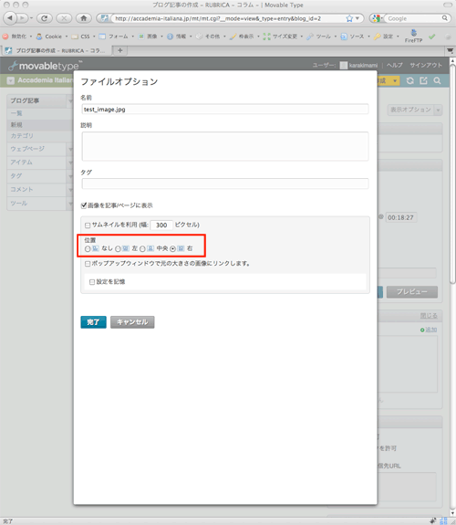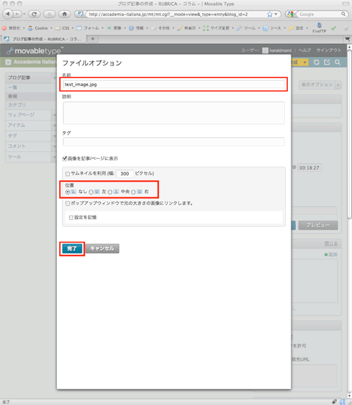 名前:画像の名前です。日本語も使用出来ます。デフォルトでは画像ファイル名が入っています。そのままでよければ変更しなくて結構です。