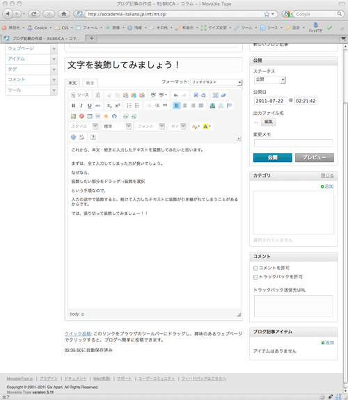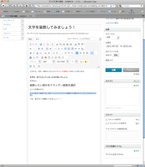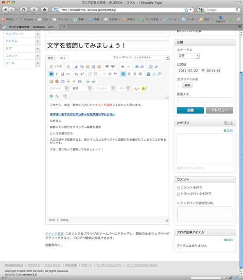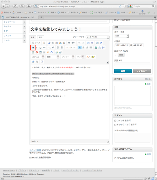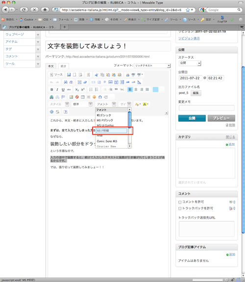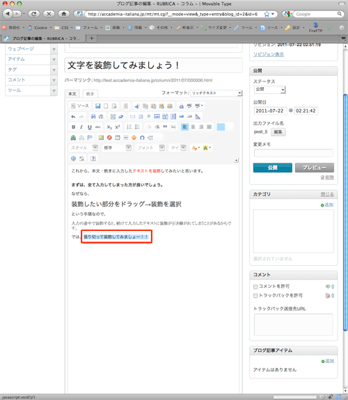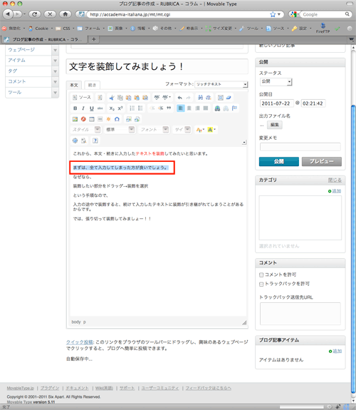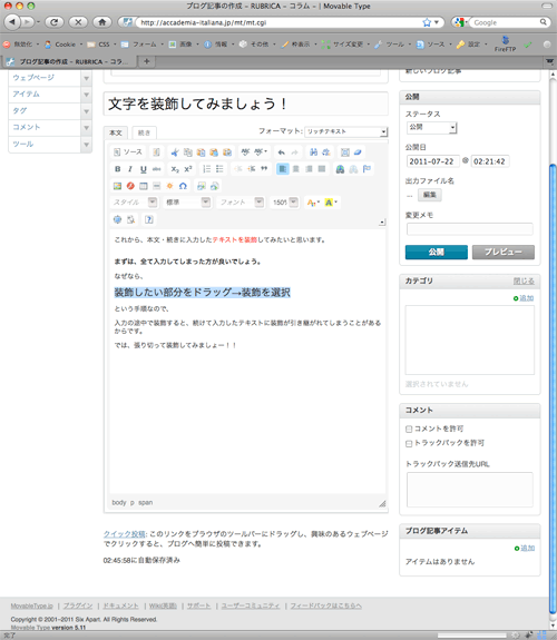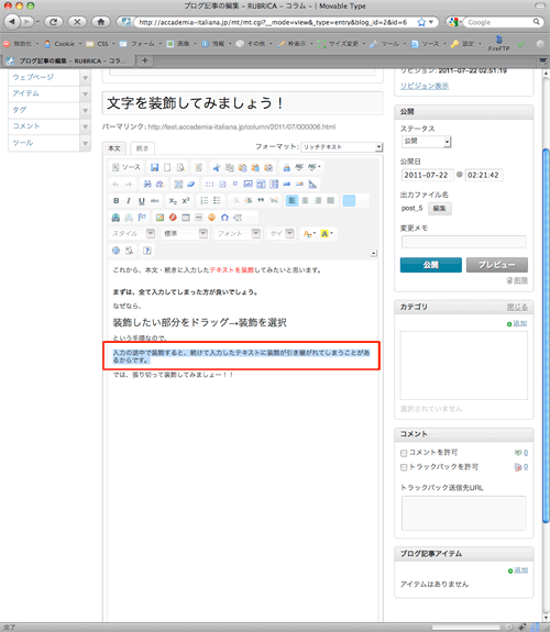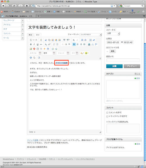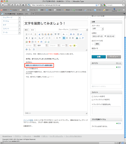 なぜなら、装飾したい部分をドラッグ→装飾を選択 という手順なので、