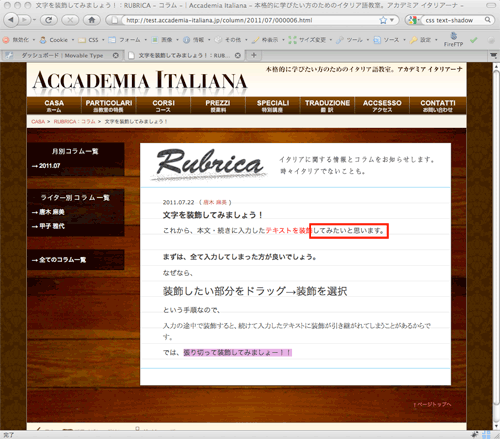 - 編集した記事が表示されているのを確認します。