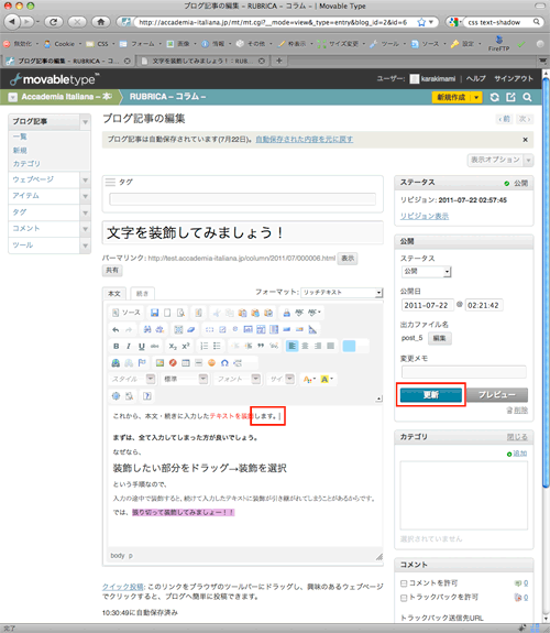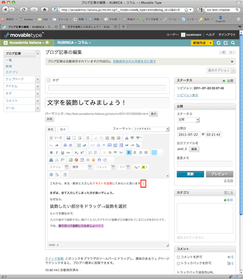 - クリックした記事の編集画面です。